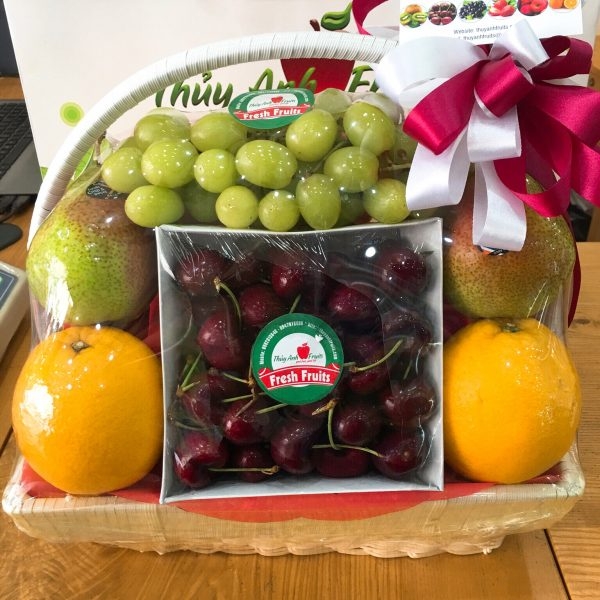 Giỏ hoa quả tết bán tại cửa hàng Thủy Anh fruits có giá 1.100.000 đ/ giỏ