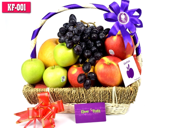 Giỏ hoa quả tết của cửa hàng trái cây nhập khẩu Klever Fruits có giá 900.000 đ/ giỏ