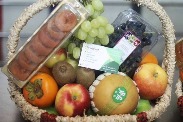 Giỏ hoa quả tết bán tại cửa hàng Clever Food trên địa bàn Hà Nội