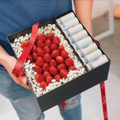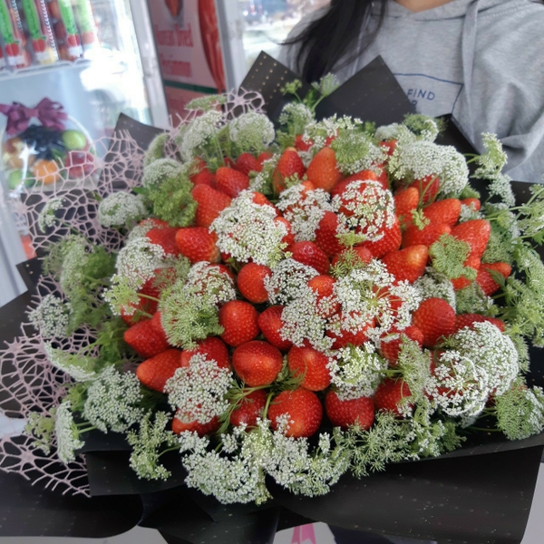 Bó hoa dâu tây và hộp quà dâu tây Hàn Quốc và Mộc Châu, Đà Lạt.