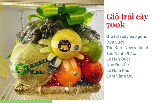 Mẫu giỏ hoa quả 700k bán tại cửa hàng Halafruit.